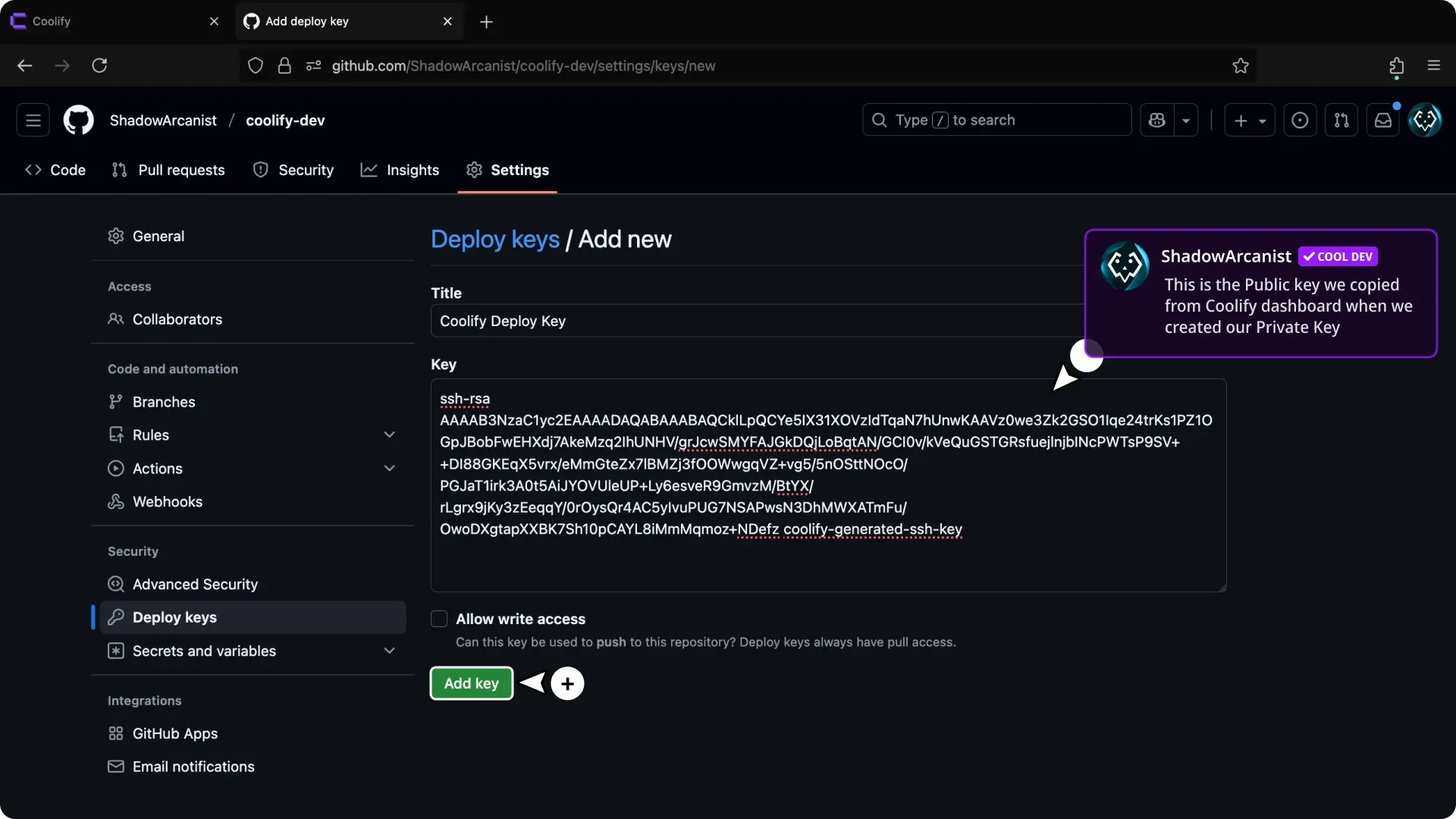 Coolify Deploy Key). - Paste the public key you copied from Coolify.
