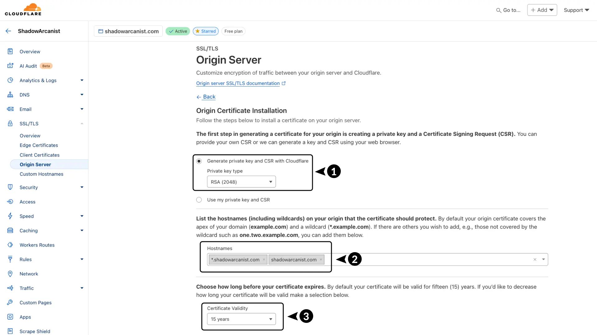 To create your Cloudflare Origin Certificate, follow these steps: