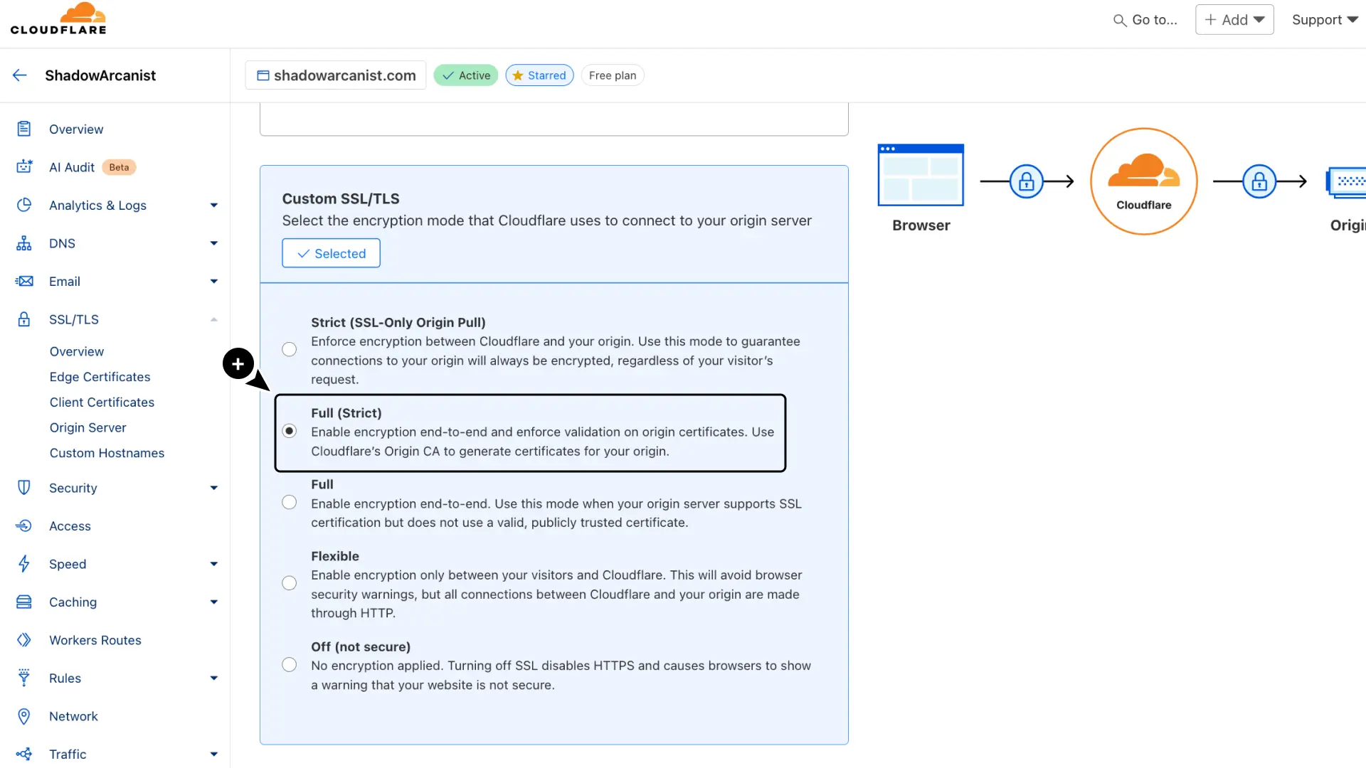 - In Cloudflare, go to SSL/TLS