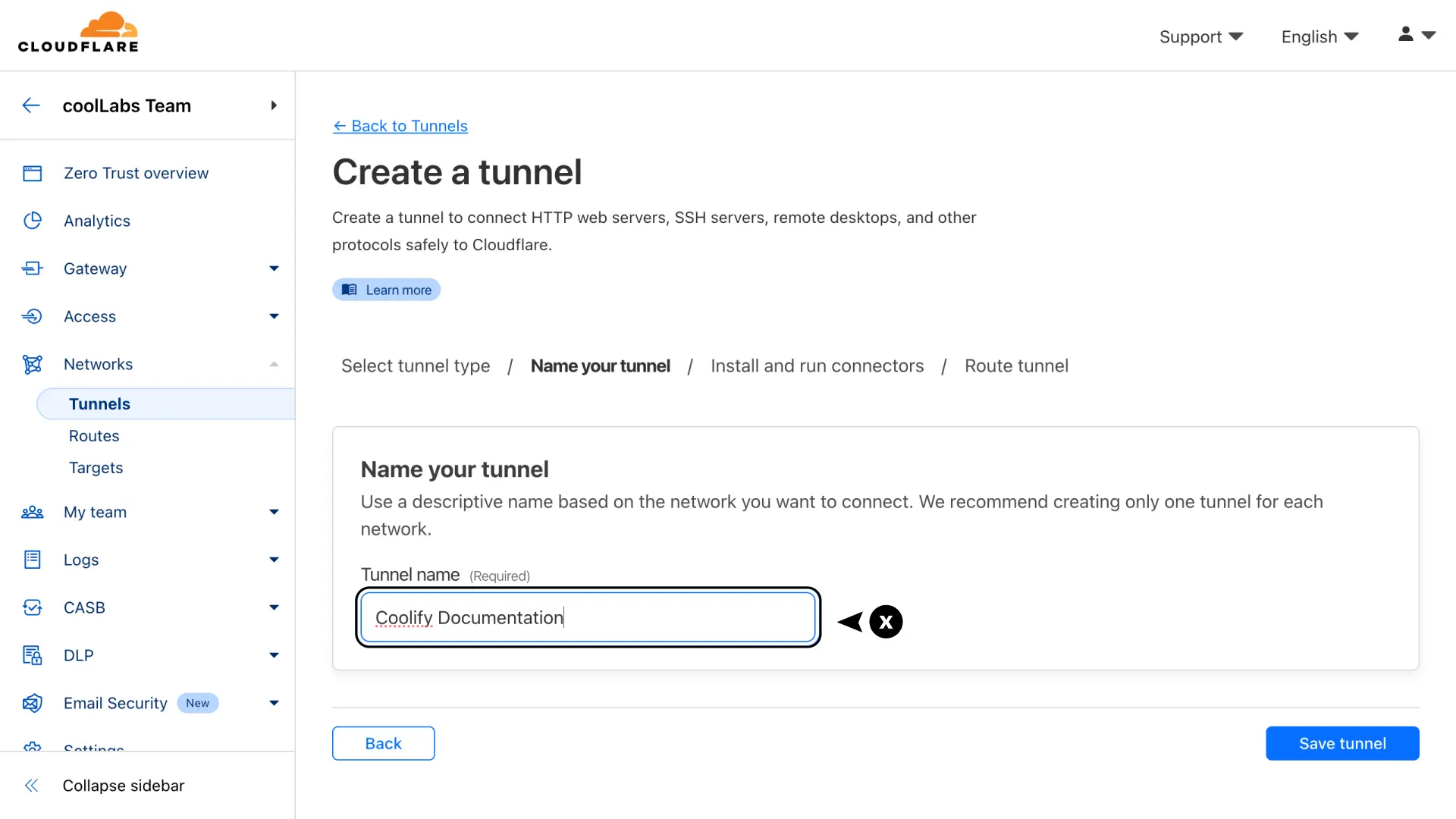 - After filling in the details, click the Save Tunnel button.