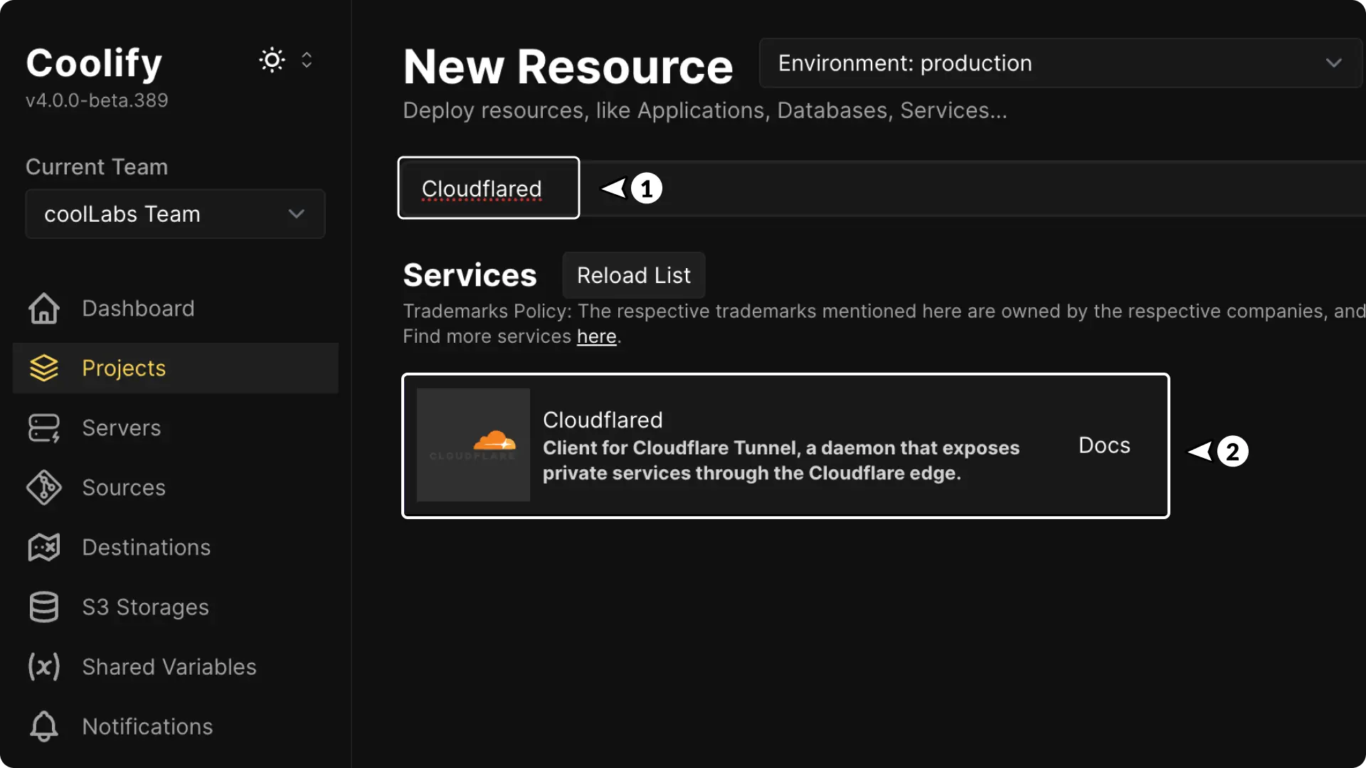 3. Setup Cloudflare Tunnel on Coolify ​