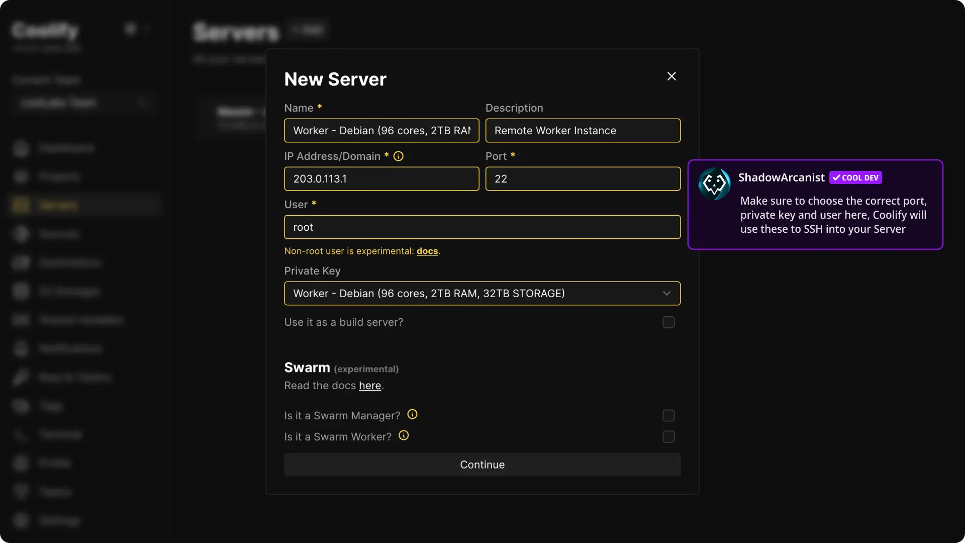 If your server is already connected to Coolify, skip to the next step.