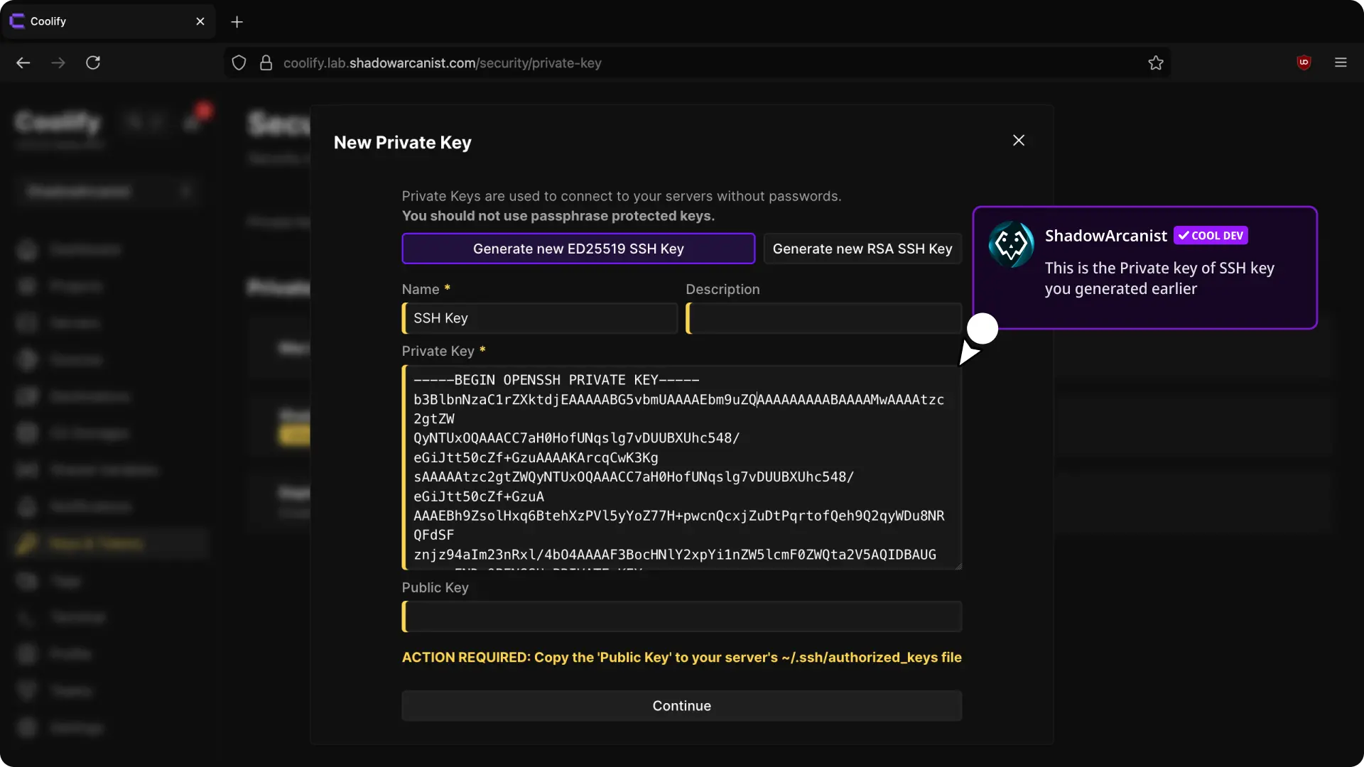 chmod 600 ~/.ssh/authorized_keys5. Add private key to Coolify ​