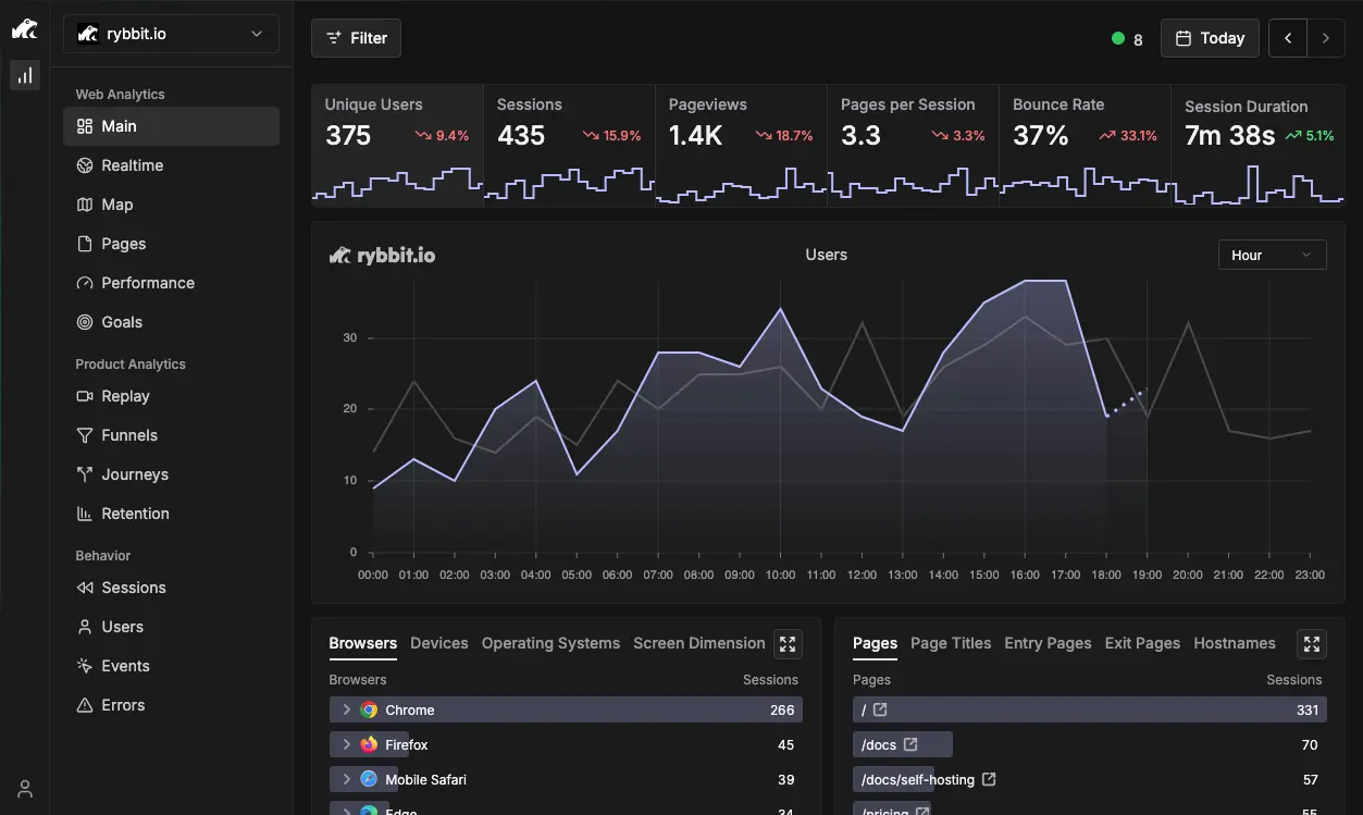 Rybbit is a next-gen, open source, lightweight, cookieless web & product analytics for everyone.