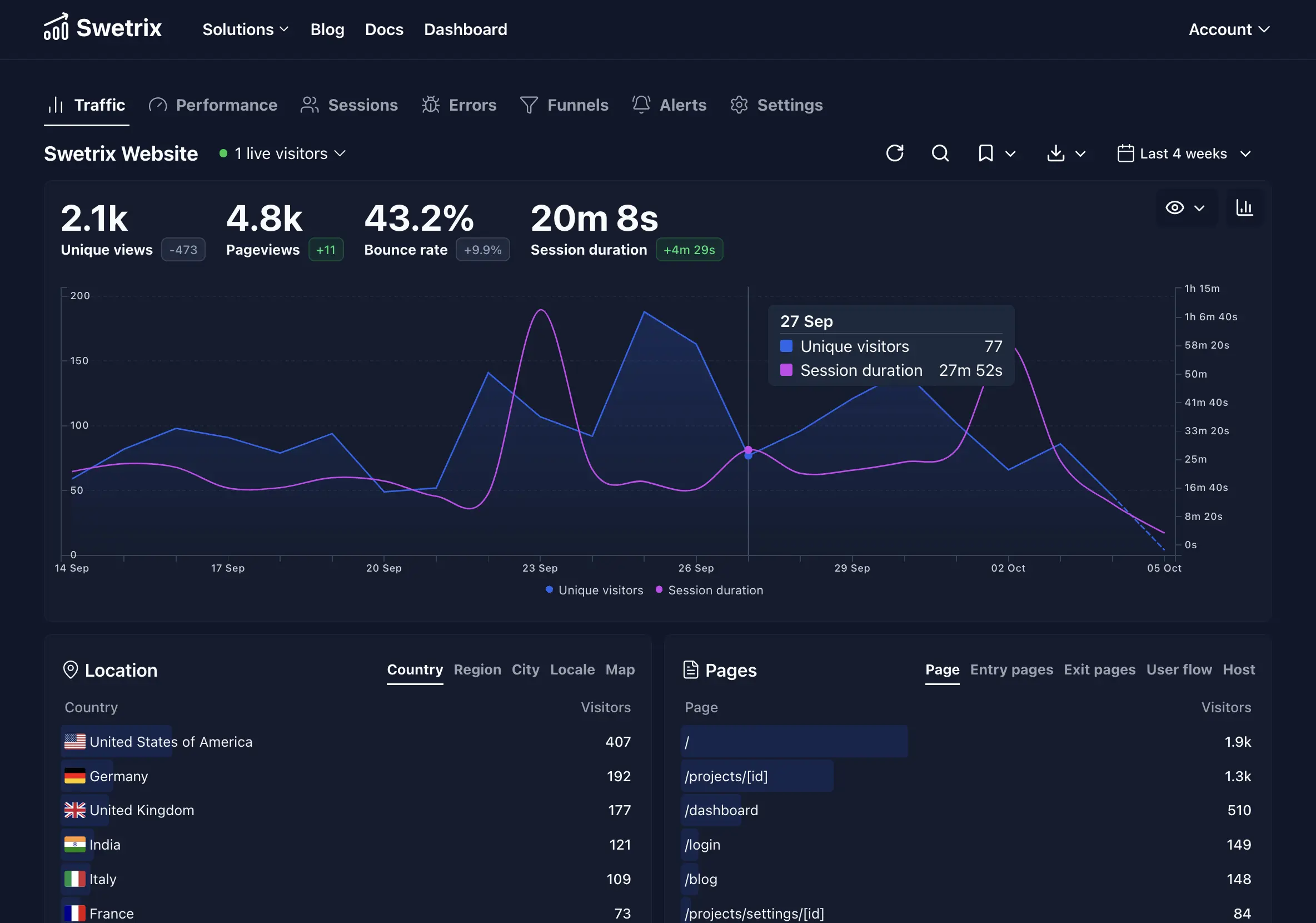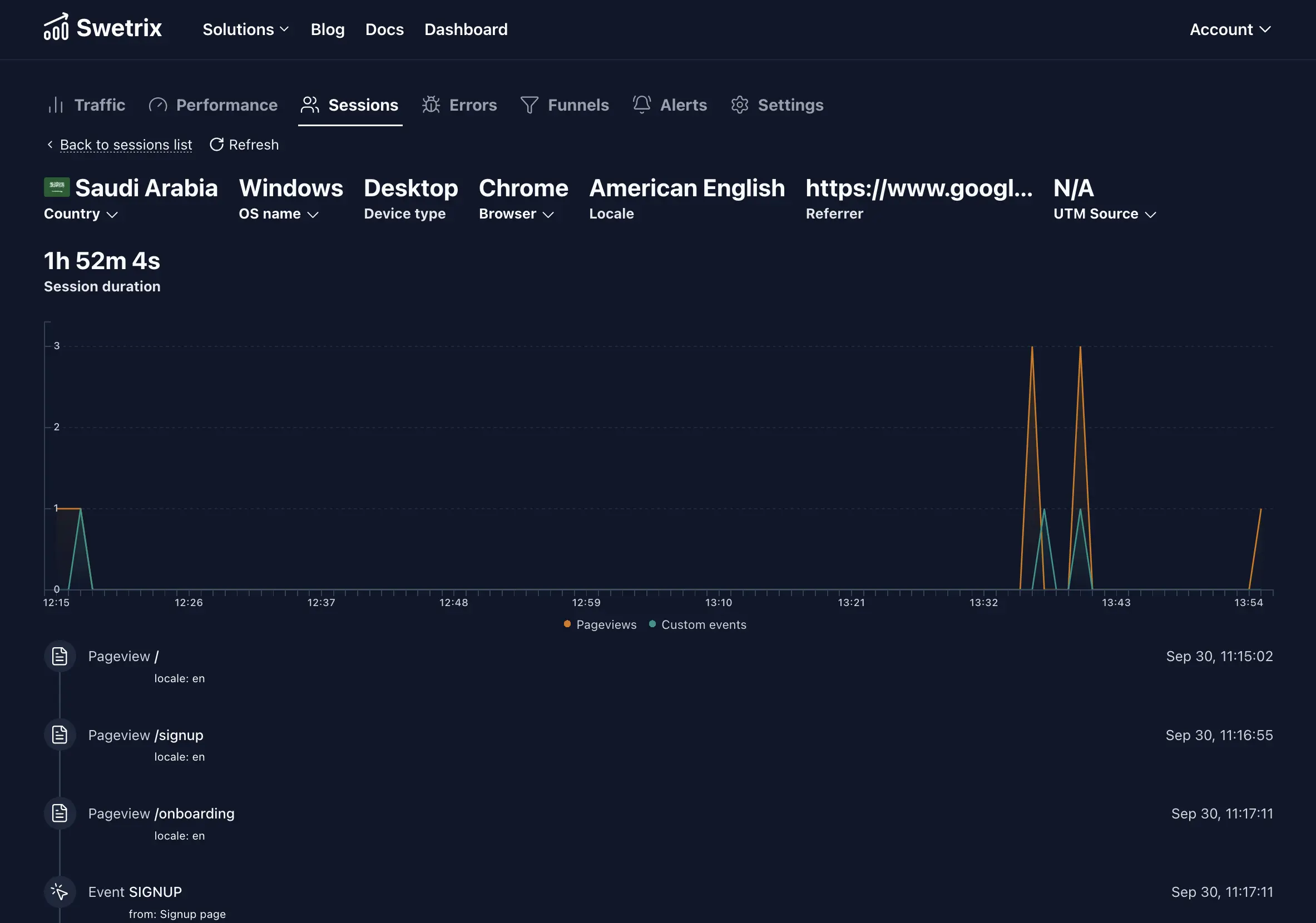 Swetrix is a privacy-friendly, cookieless and open-source web analytics alternative to Google Analytics. Designed to be intuitive and not intrusive to your users privacy, Swetrix offers web analytics with real-time data, website speed monitoring, errors tracking, session analytics, and more.